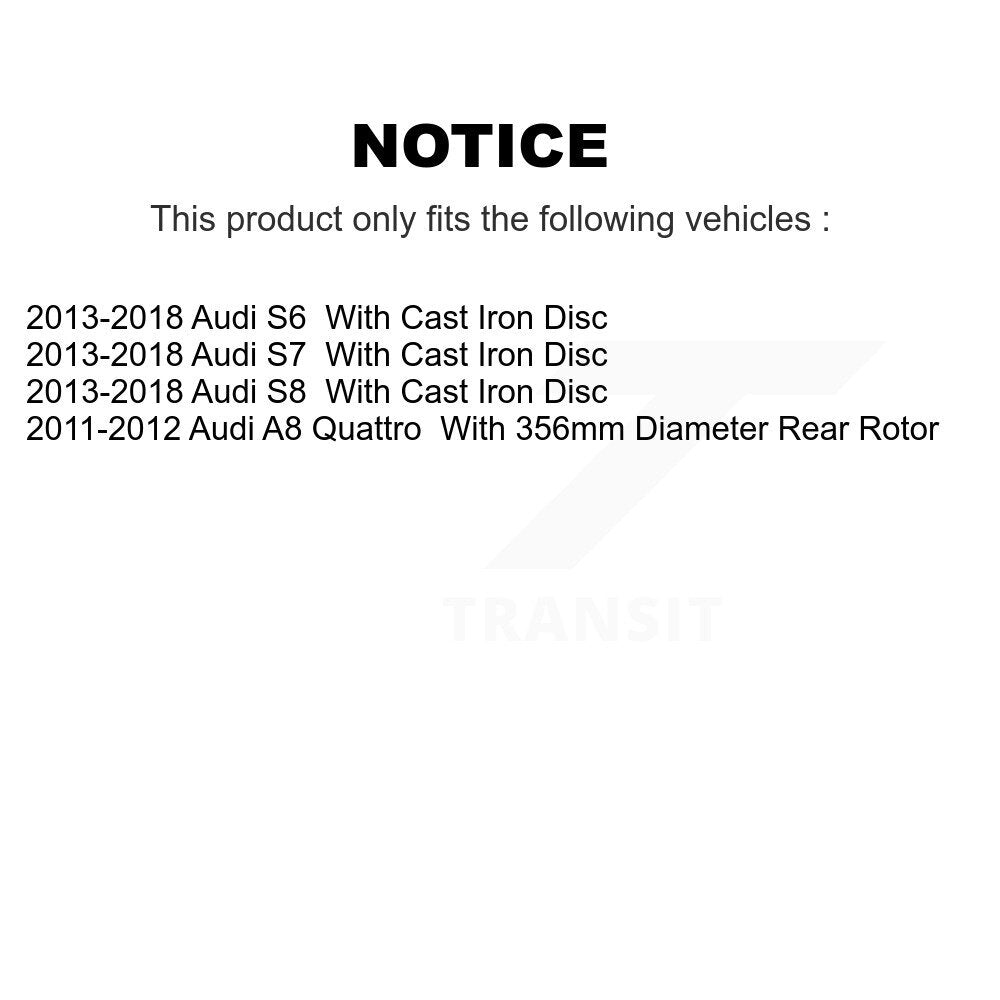 | 2011 | Audi | A8 Quattro | All | With 356mm Diameter Rear Rotor | All | All | All | All |