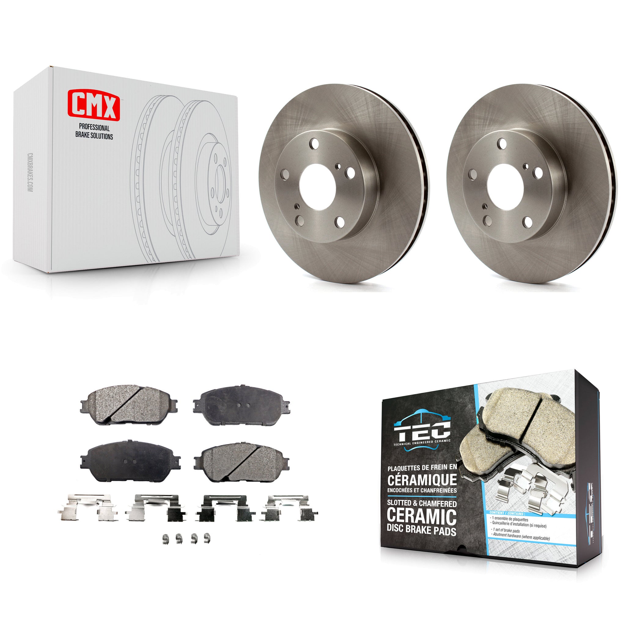 - INCLUDES: 2x Front Top Quality Disc Brake Rotor (Both Side) + 1x Front Ceramic TEC Brake Pad Set (Hardware Included)