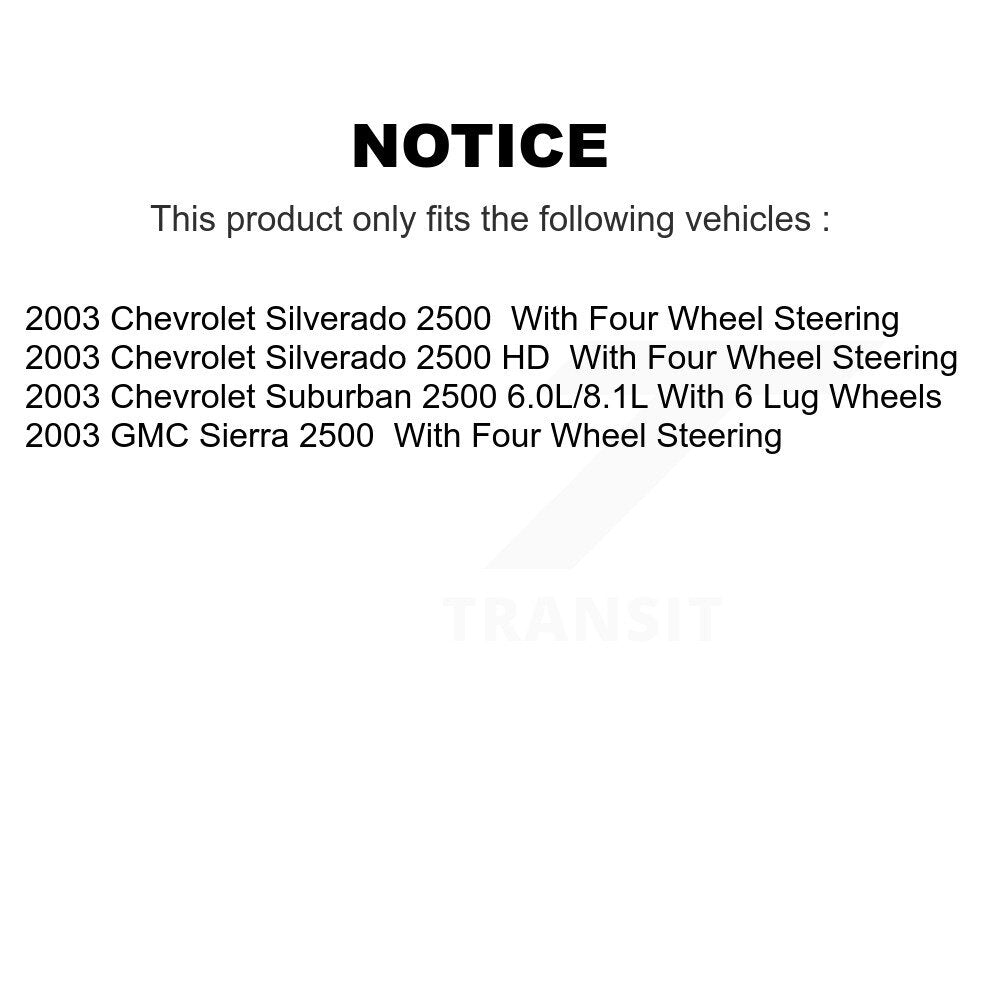 | 2003 | Chevrolet | Silverado 2500 HD | All | With Four Wheel Steering | All | All | All | All |