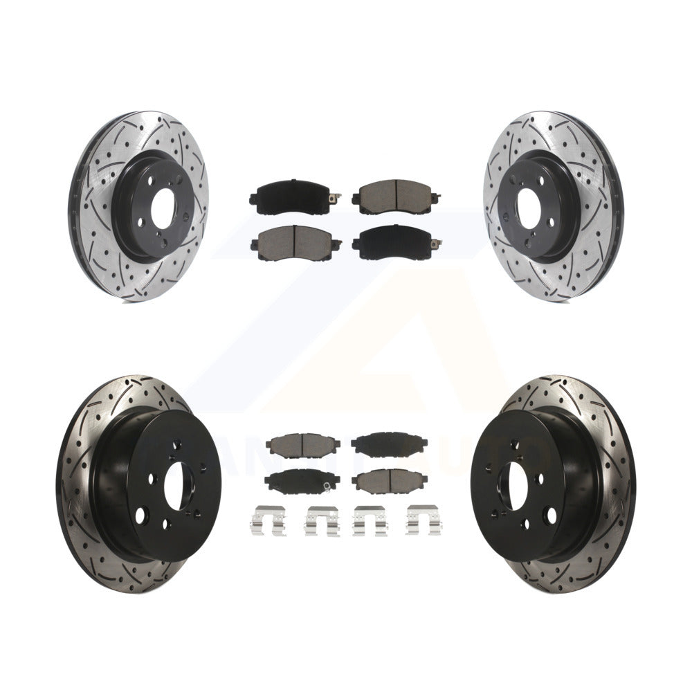 - INCLUDES: 2x Front Coated Drilled Slotted DS-One Disc Brake Rotor (Both Side) + 1x Front Ceramic CMX Brake Pad Set + 2x Rear Coated Drilled Slotted DS-One Disc Brake Rotor (Both Side) + 1x Rear Ceramic CMX Brake Pad Set (Hardware Included)