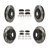 - INCLUDES: 2x Front Coated Drilled Slotted DS-One Disc Brake Rotor (Both Side) + 1x Front Ceramic CMX Brake Pad Set (Hardware Included) + 2x Rear Coated Drilled Slotted DS-One Disc Brake Rotor (Both Side) + 1x Rear Ceramic CMX Brake Pad Set (Hardware