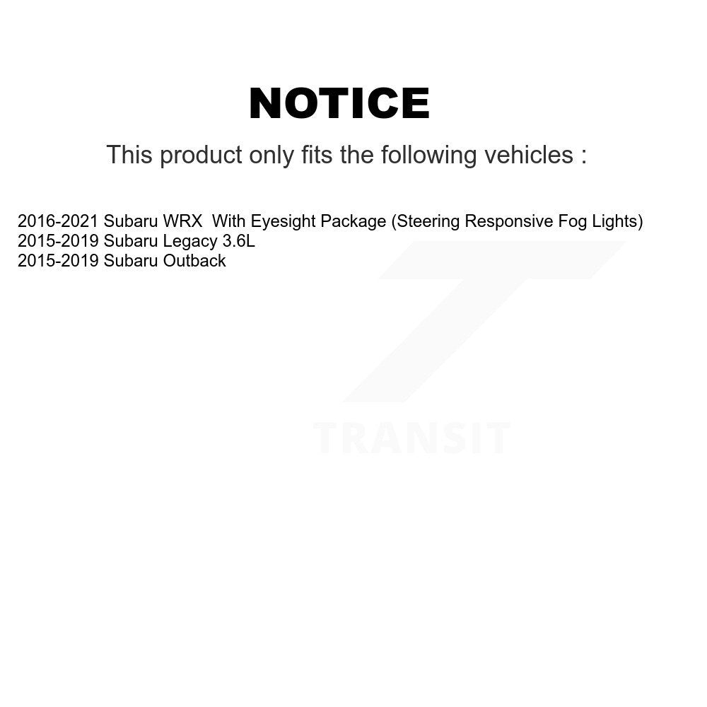 | 2017 | Subaru | WRX | All | With Eyesight Package (Steering Responsive Fog Lights) | All | All | All | All |