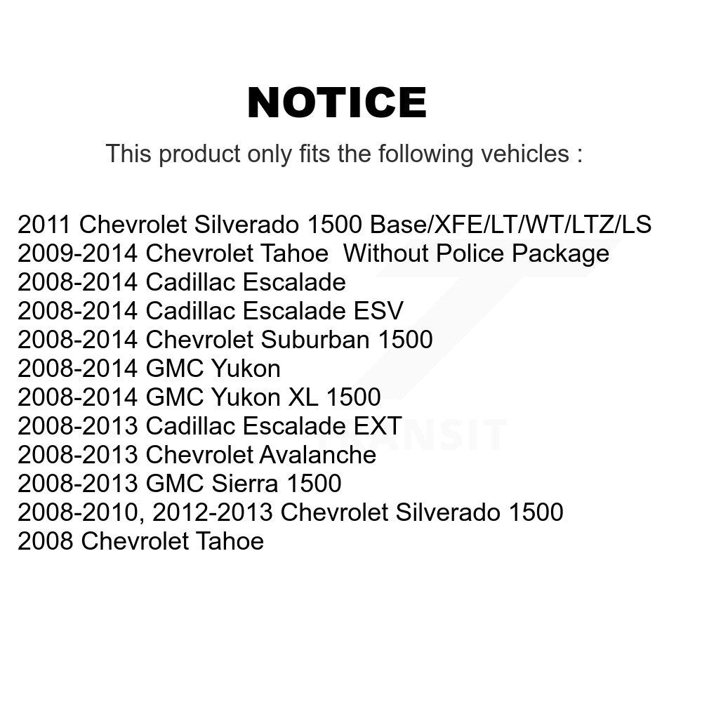 | 2011 | Chevrolet | Tahoe | All | Without Police Package | All | All | All | All |
