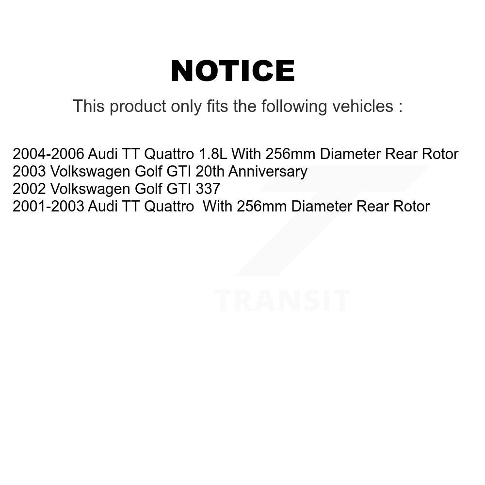 | 2001 | Audi | TT Quattro | All | With 256mm Diameter Rotor | All | All | All | All |