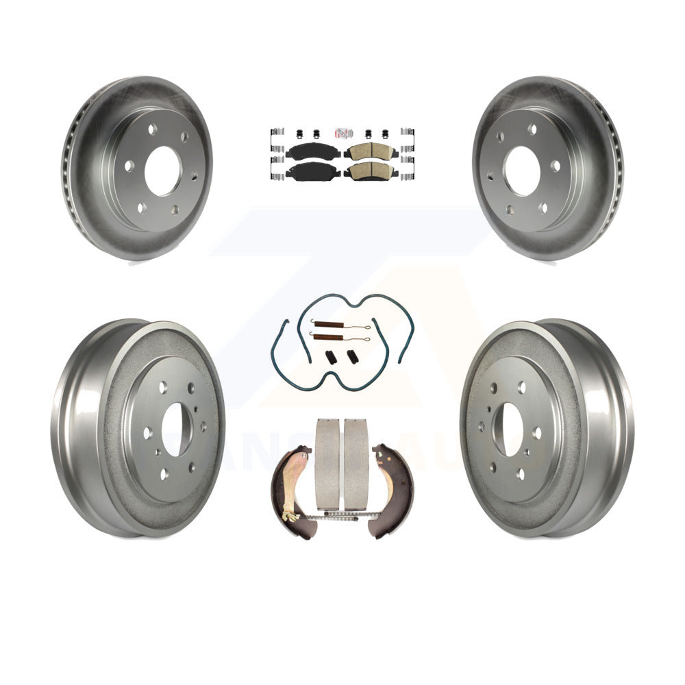 - INCLUDES: 2x Front Coated Genius Disc Brake Rotor (Both Side) + 2x Rear Coated Genius Brake Drum (Both Side) + 1x Front Ceramic AmeriBRAKES Brake Pad Set (Hardware Included) + 1x Rear Top Quality Drum Brake Hardware Kit + 1x Rear Top Quality Drum Bra