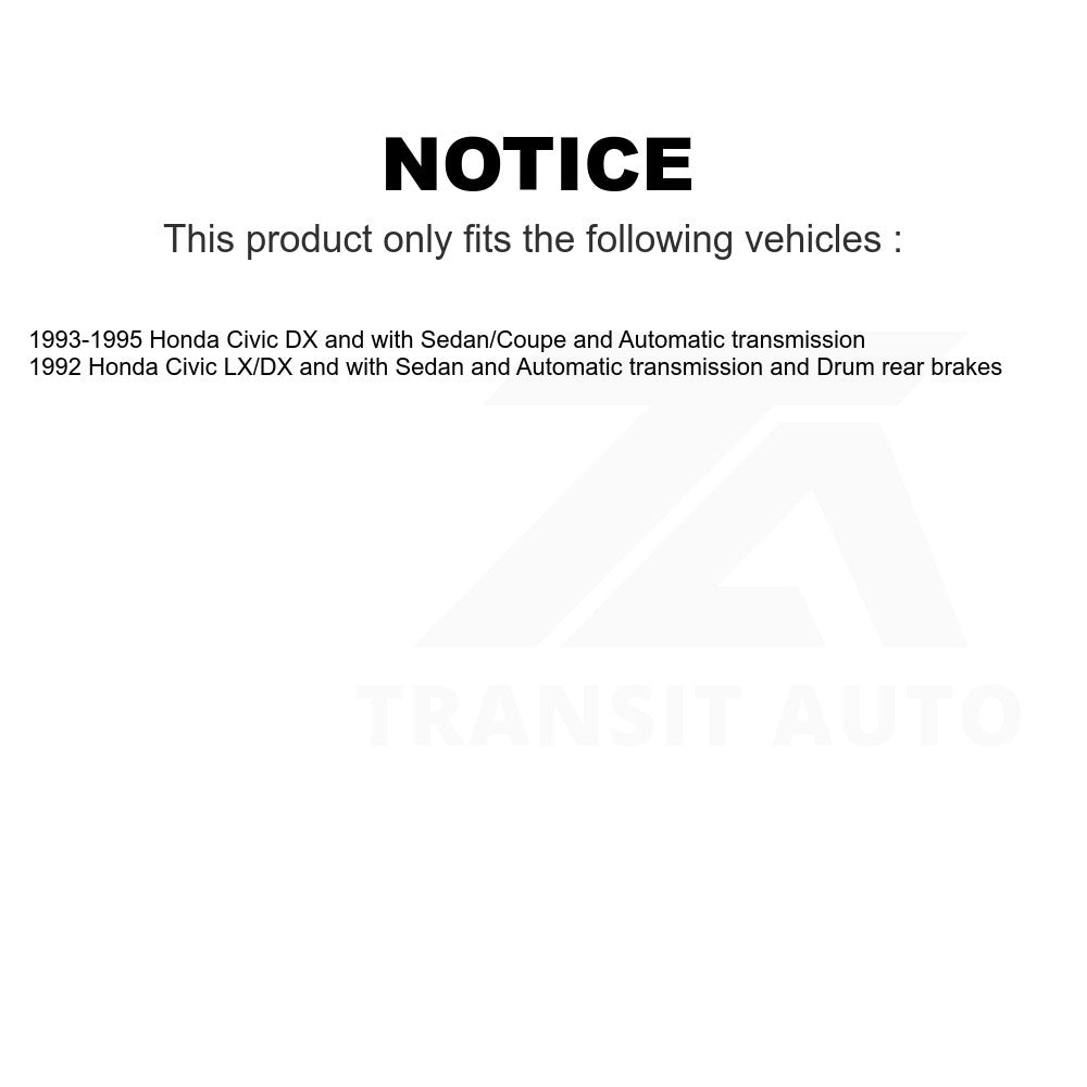 | 1993 | Honda | Civic | DX | None | Coupe | All | All | All |