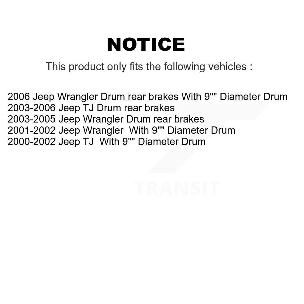 | 2000 | Jeep | TJ | All | With 9" Diameter Drum | All | All | All | All |
