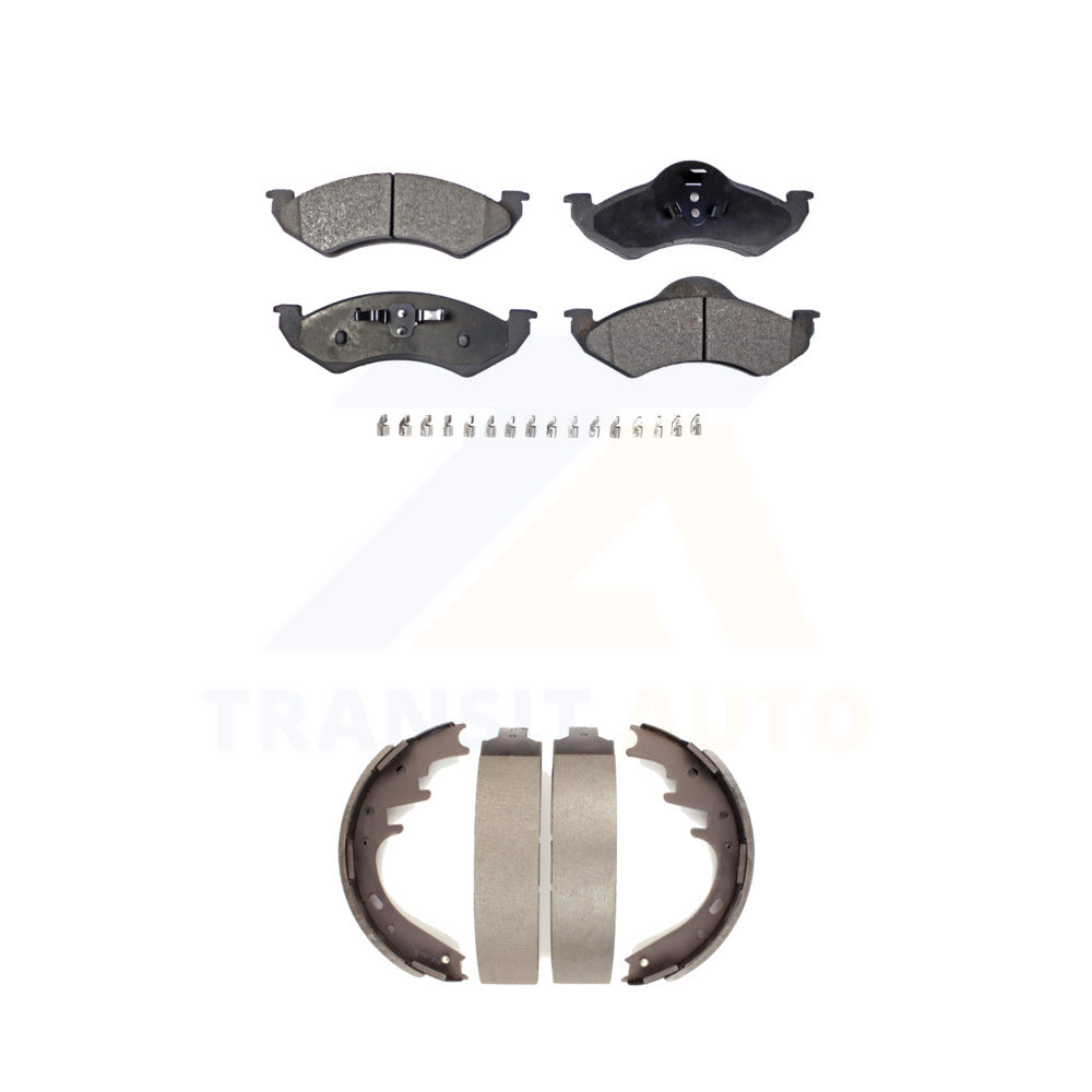 - INCLUDES: 1x Front Semi-Metallic Positive Plus Brake Pad Set (Hardware Included) + 1x Rear Top Quality Drum Brake Shoe Set