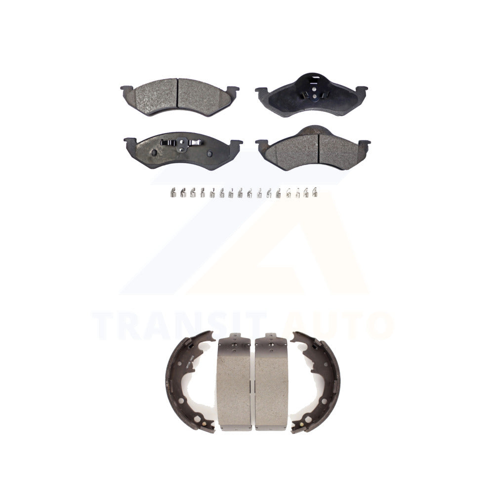 - INCLUDES: 1x Front Semi-Metallic Positive Plus Brake Pad Set (Hardware Included) + 1x Rear Top Quality Drum Brake Shoe Set