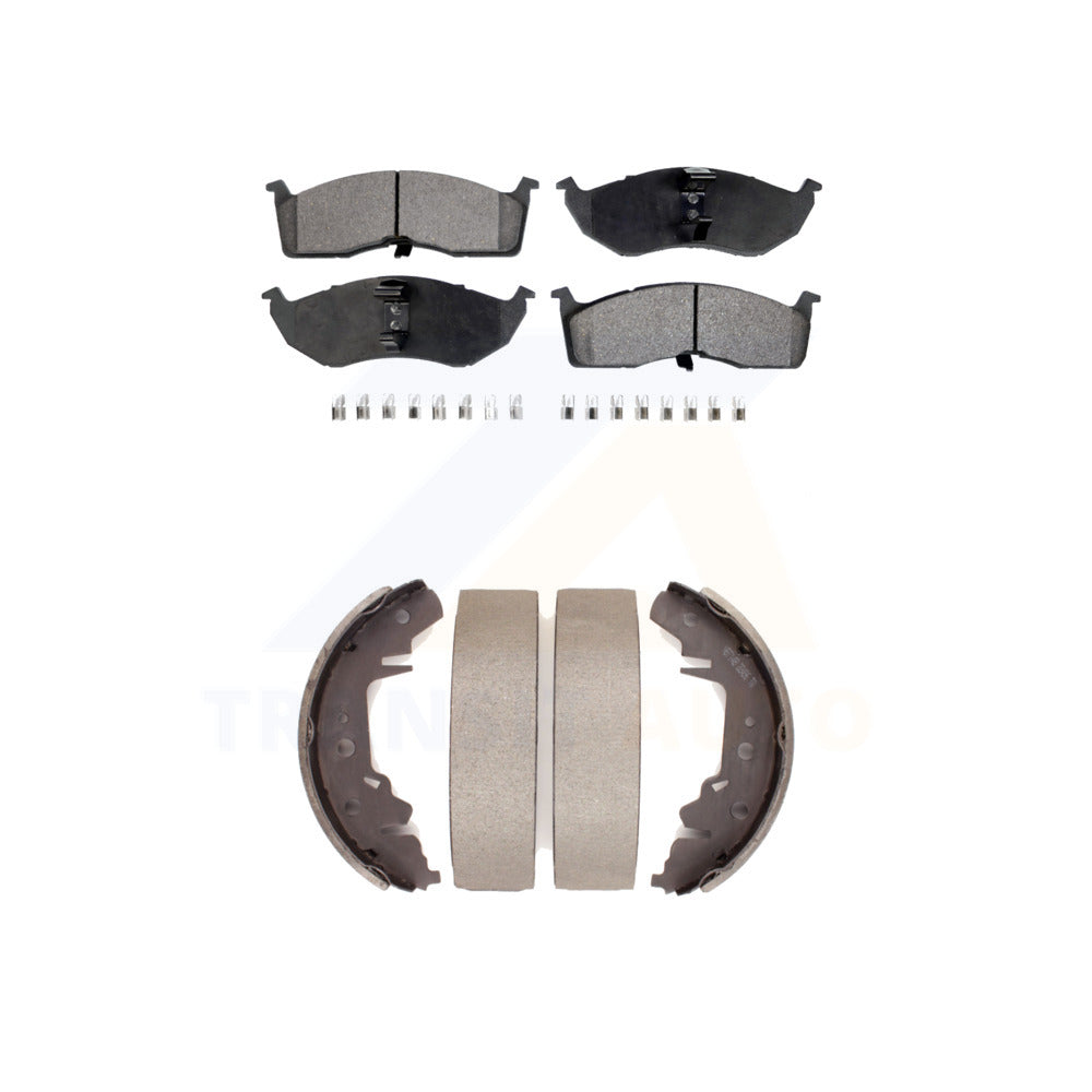 - INCLUDES: 1x Front Semi-Metallic Positive Plus Brake Pad Set (Hardware Included) + 1x Rear Top Quality Drum Brake Shoe Set