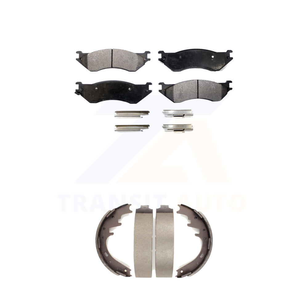 Front Rear Semi-Metallic Brake Pads Drum Shoes Kit For Ford F-150 Dodge Ram 1500