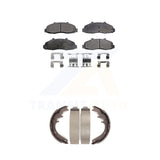 - INCLUDES: 1x Front Semi-Metallic Positive Plus Brake Pad Set (Hardware Included) + 1x Rear Top Quality Drum Brake Shoe Set