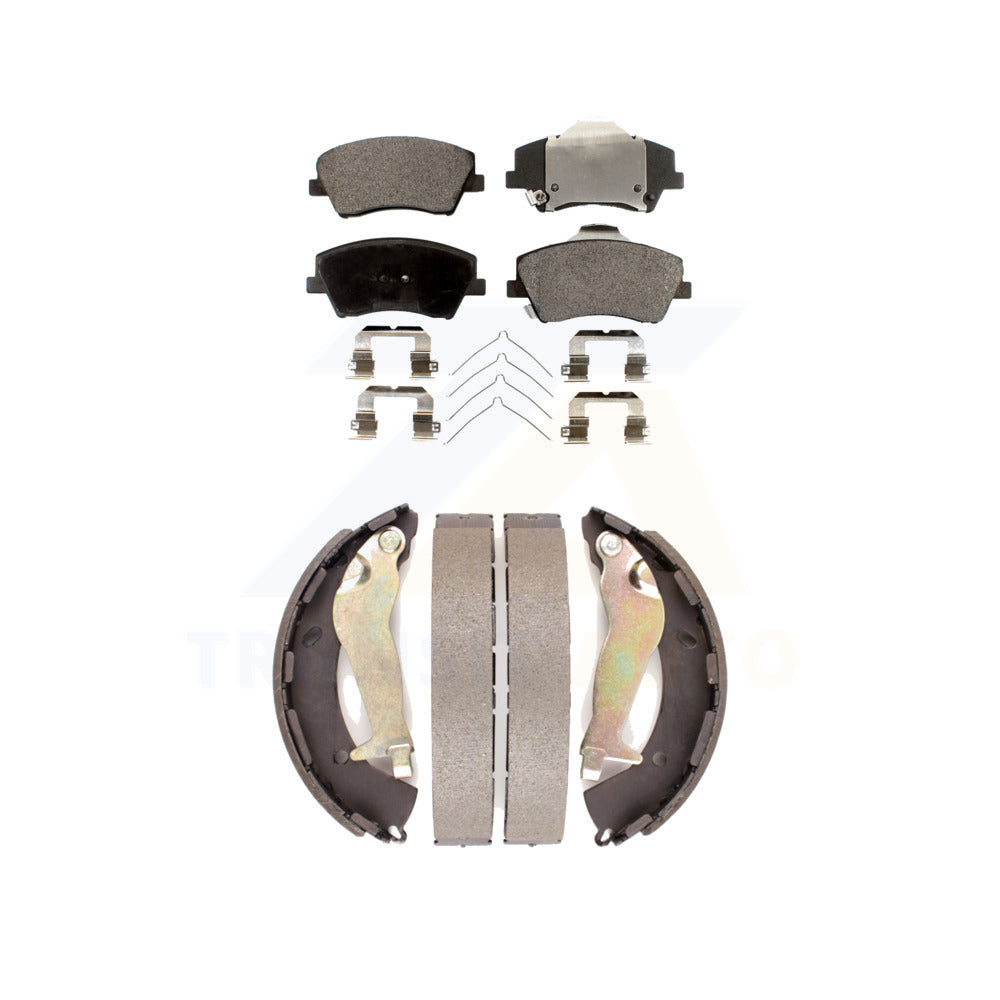 - INCLUDES: 1x Front Semi-Metallic Positive Plus Brake Pad Set (Hardware Included) + 1x Rear Top Quality Drum Brake Shoe Set