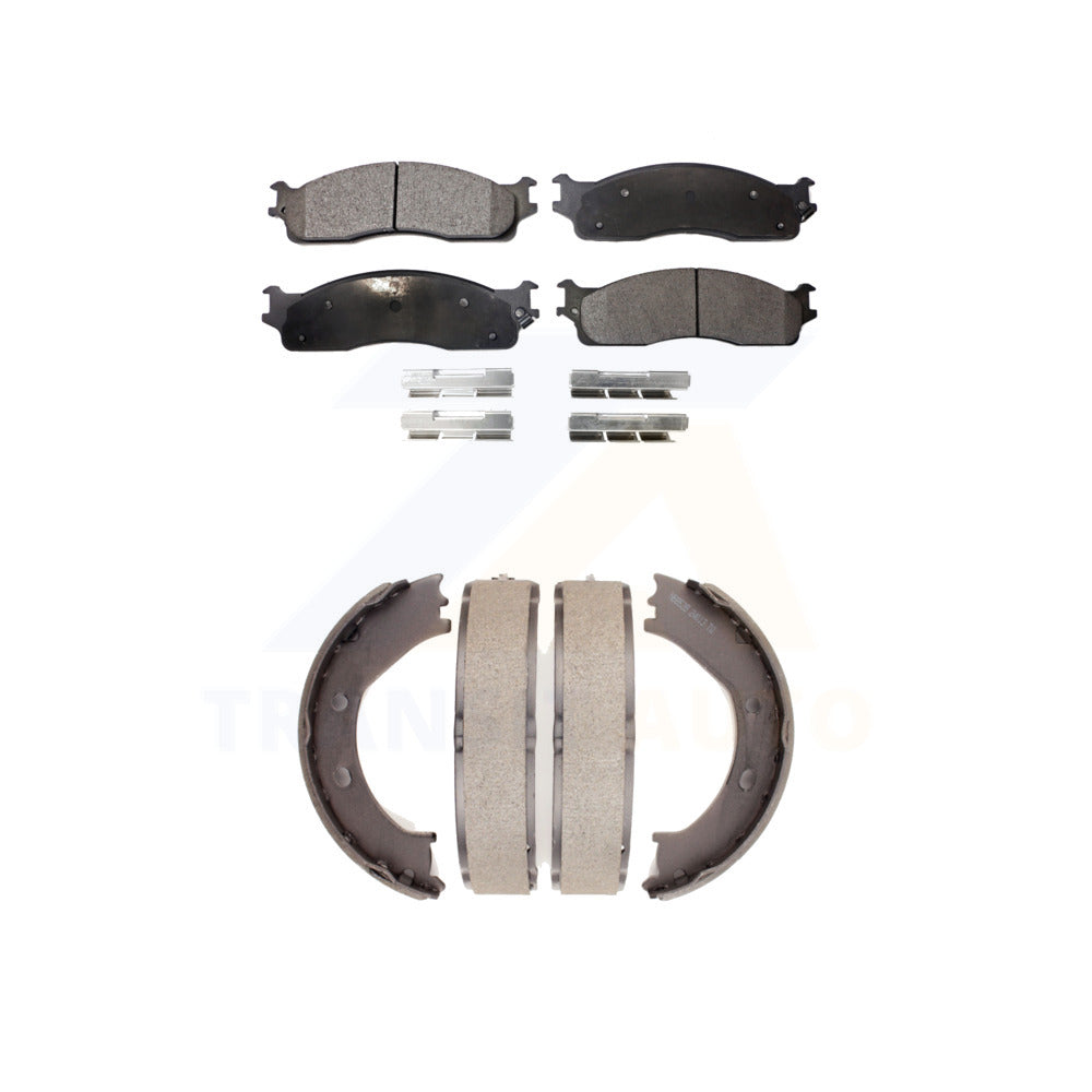 - INCLUDES: 1x Front Semi-Metallic Positive Plus Brake Pad Set (Hardware Included) + 1x Rear Top Quality Parking Brake Shoe