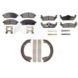 - INCLUDES: 1x Front Semi-Metallic Positive Plus Brake Pad Set (Hardware Included) + 1x Rear Semi-Metallic Positive Plus Brake Pad Set (Hardware Included) + 1x Rear Top Quality Parking Brake Shoe