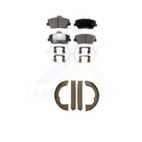 - INCLUDES: 1x Front Semi-Metallic Positive Plus Brake Pad Set (Hardware Included) + 1x Rear Top Quality Parking Brake Shoe