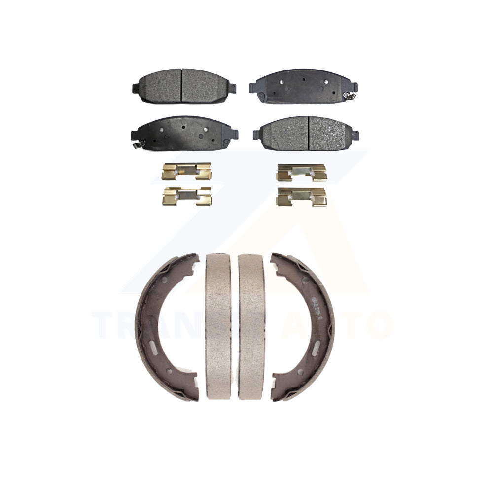 - INCLUDES: 1x Front Semi-Metallic Positive Plus Brake Pad Set (Hardware Included) + 1x Rear Top Quality Parking Brake Shoe