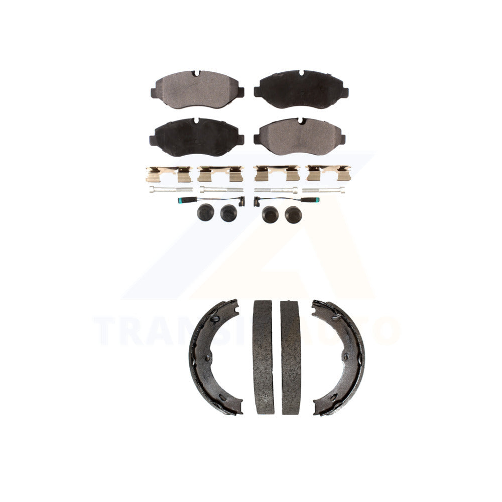 - INCLUDES: 1x Front Semi-Metallic Positive Plus Brake Pad Set (With Sensor) (Hardware Included) + 1x Rear Top Quality Parking Brake Shoe