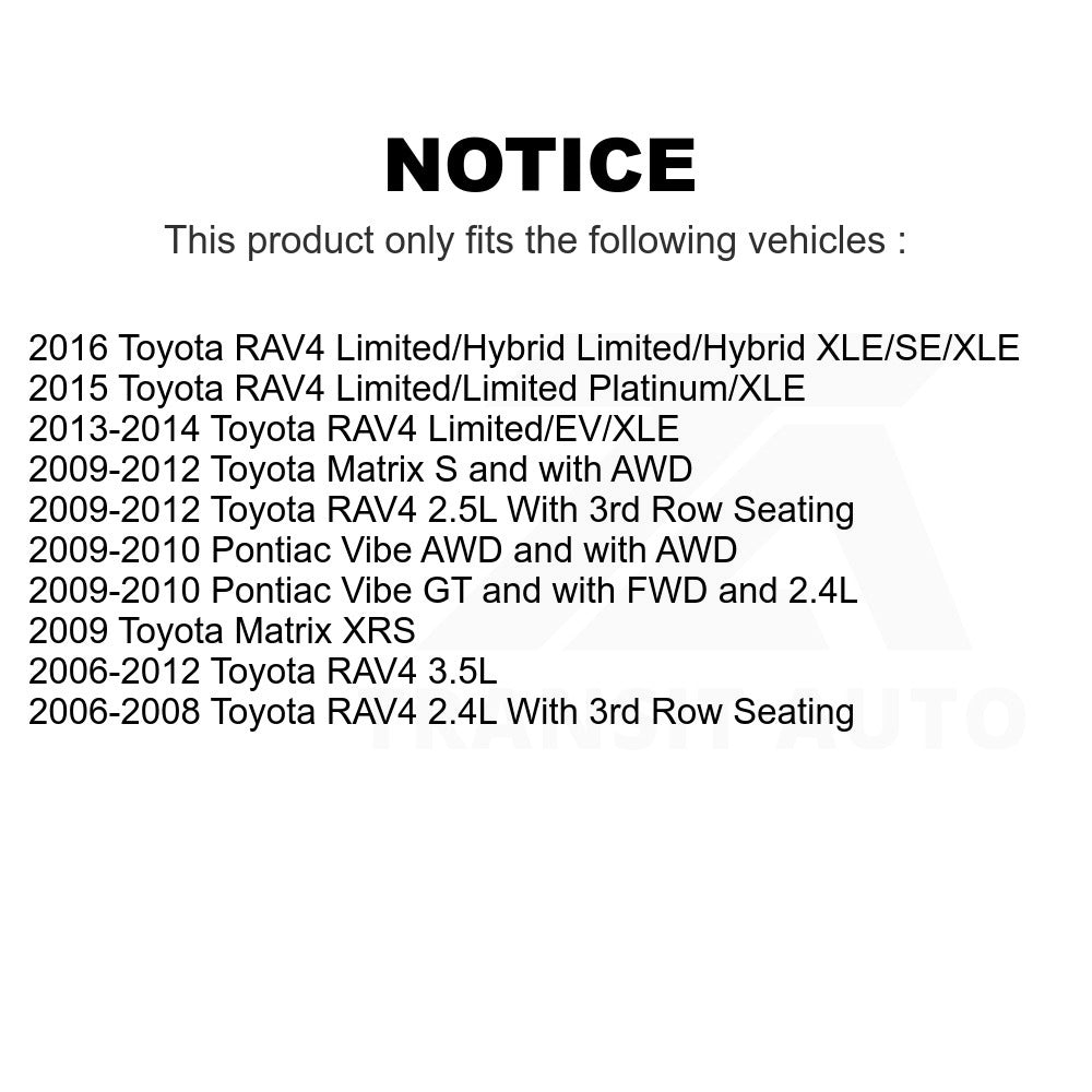 | 2010 | Pontiac | Vibe | GT | None | All | FWD | 2.4 | All |