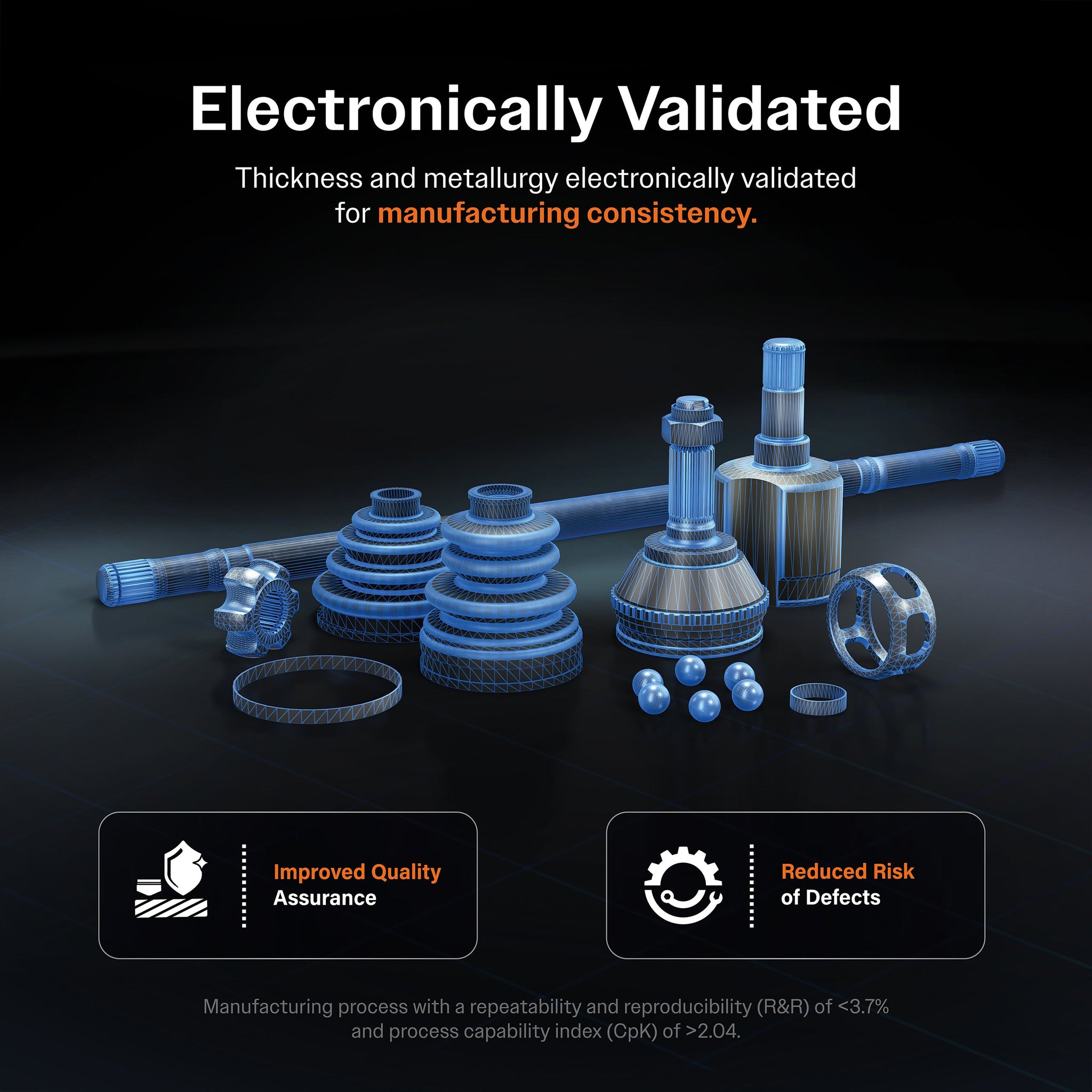 - SAE J1714, J2525 and J2535 validated for OEM load-carrying capacity, durability, and performance characteristics