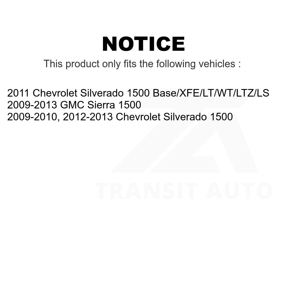 | 2011 | Chevrolet | Silverado 1500 | Base | None | All | All | All | All |