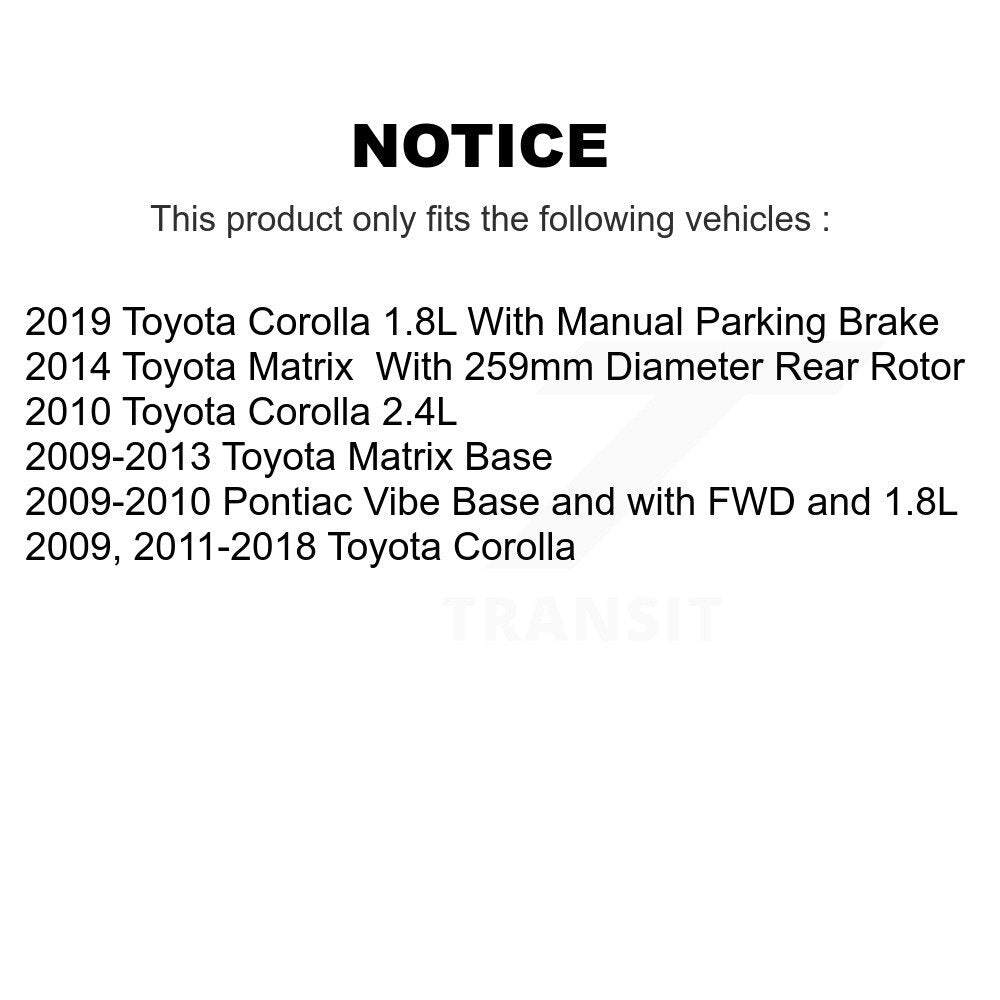 | 2019 | Toyota | Corolla | All | With Manual Parking Brake | All | All | 1.8 | All |