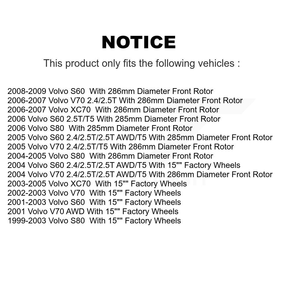 | 2005 | Volvo | S60 | 2.5T AWD | With 285mm Diameter Rotor | All | All | All | All |