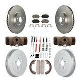 - INCLUDES: 2x Front Coated Genius Disc Brake Rotor (Both Side) + 2x Rear Coated Genius Brake Drum (Both Side) + 1x Front Ceramic CMX Brake Pad Set (Hardware Included) + 1x Rear Top Quality Drum Brake Hardware Kit + 1x Rear Top Quality Drum Brake Shoe