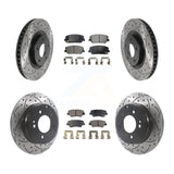 - INCLUDES: 2x Front Coated Drilled Slotted DS-One Disc Brake Rotor (Both Side) + 1x Front Ceramic TEC Brake Pad Set (Hardware Included) + 2x Rear Coated Drilled Slotted DS-One Disc Brake Rotor (Both Side) + 1x Rear Ceramic TEC Brake Pad Set (Hardware