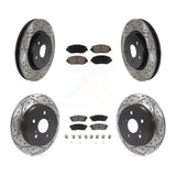 - INCLUDES: 2x Front Coated Drilled Slotted DS-One Disc Brake Rotor (Both Side) + 1x Front Ceramic CMX Brake Pad Set + 2x Rear Coated Drilled Slotted DS-One Disc Brake Rotor (Both Side) + 1x Rear Ceramic CMX Brake Pad Set (Hardware Included)
