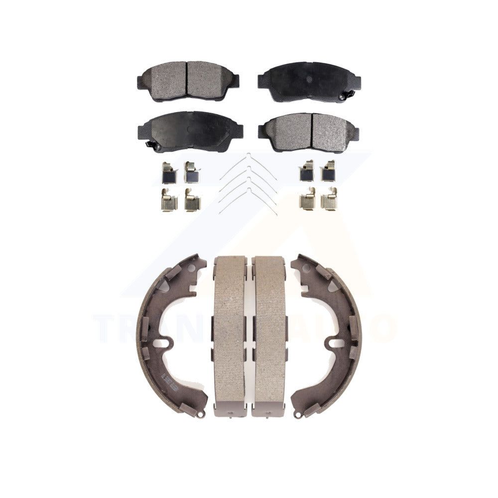 - INCLUDES: 1x Front Semi-Metallic Positive Plus Brake Pad Set (Hardware Included) + 1x Rear Top Quality Drum Brake Shoe Set