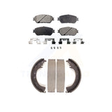 - INCLUDES: 1x Front Semi-Metallic Positive Plus Brake Pad Set (Hardware Included) + 1x Rear Top Quality Drum Brake Shoe Set