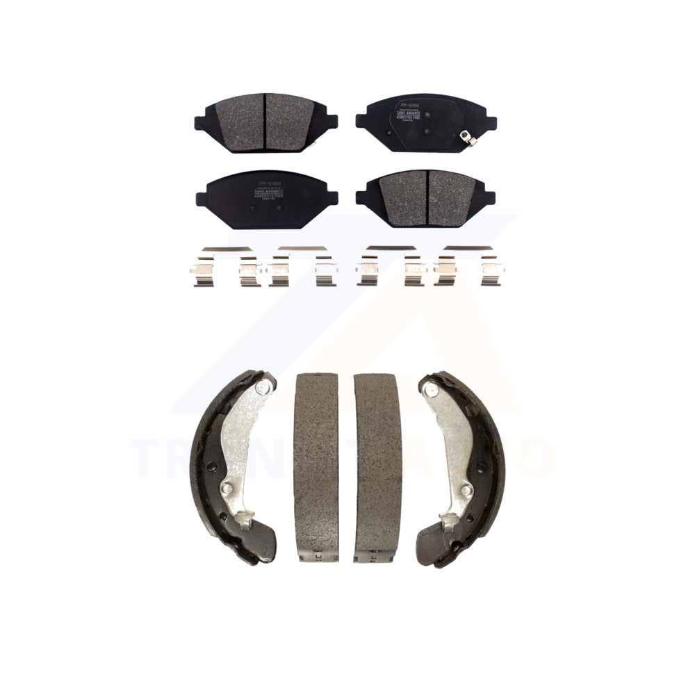 - INCLUDES: 1x Front Semi-Metallic Positive Plus Brake Pad Set (Hardware Included) + 1x Rear Top Quality Drum Brake Shoe Set