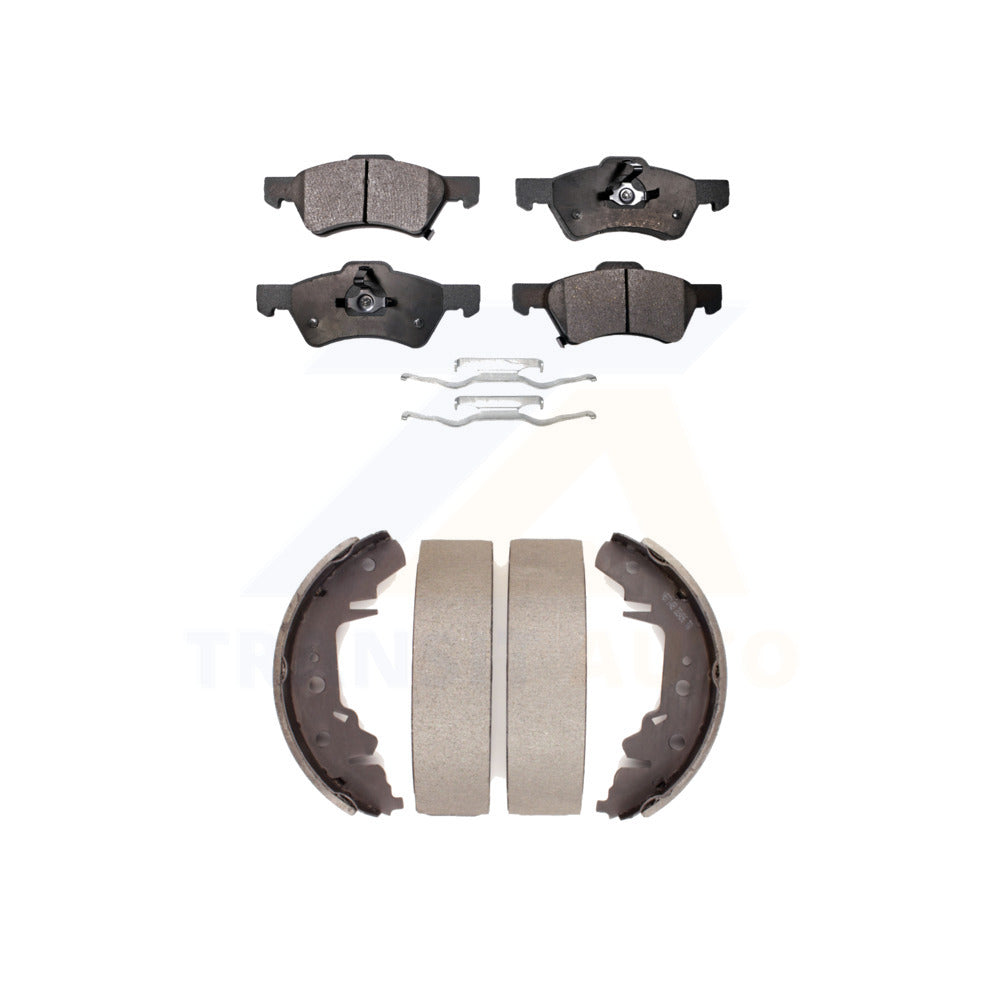 - INCLUDES: 1x Front Semi-Metallic Positive Plus Brake Pad Set (Hardware Included) + 1x Rear Top Quality Drum Brake Shoe Set