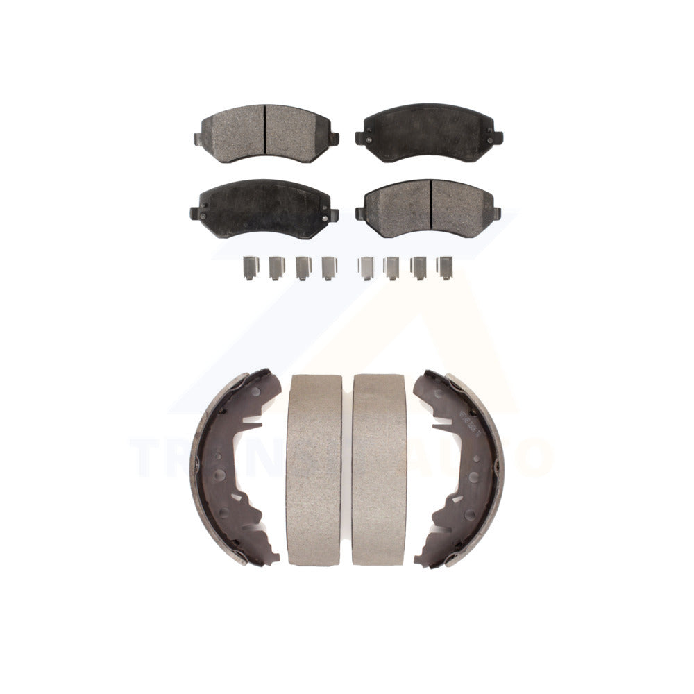 - INCLUDES: 1x Front Semi-Metallic Positive Plus Brake Pad Set (Hardware Included) + 1x Rear Top Quality Drum Brake Shoe Set