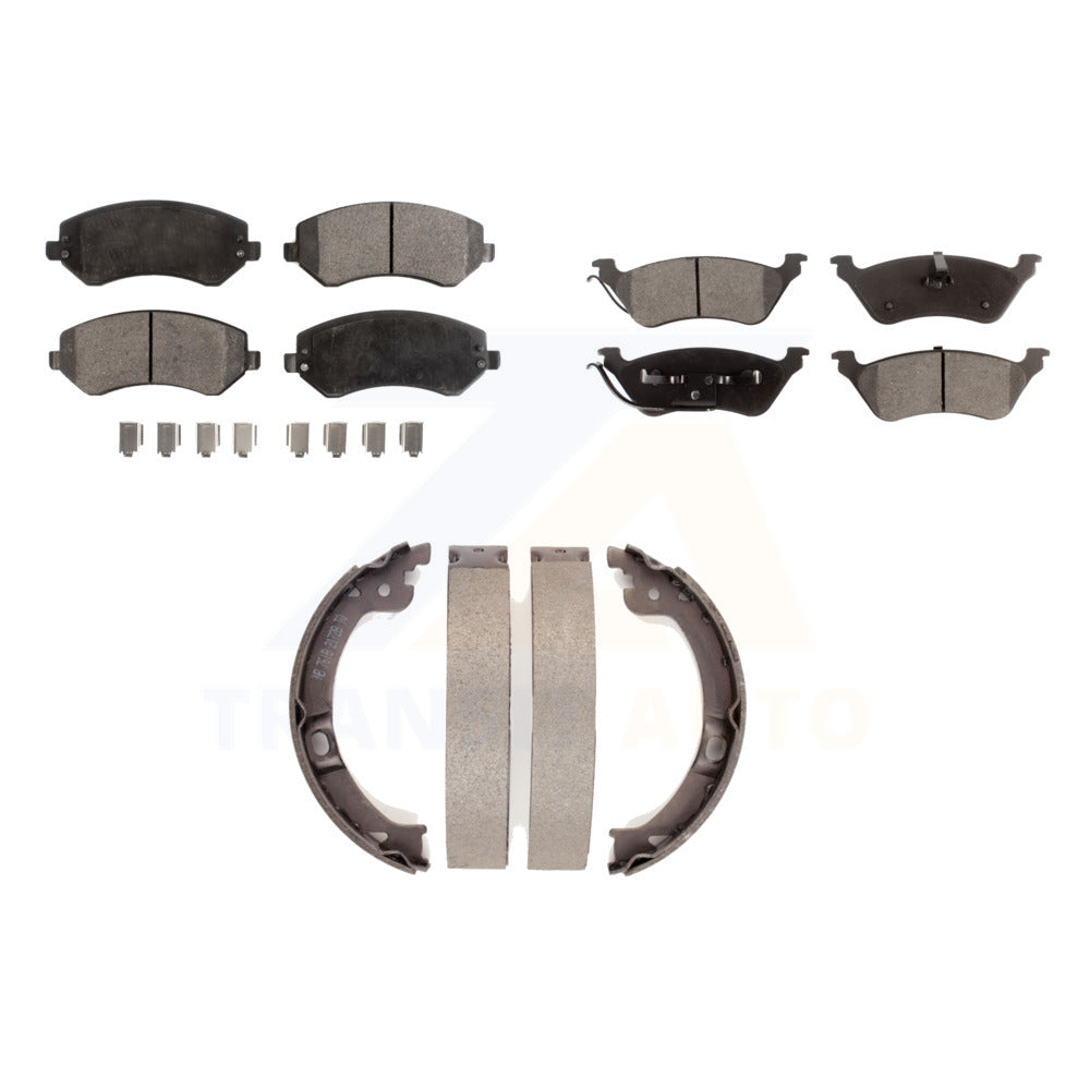 Front Rear Semi-Metallic Brake Pads & Parking Shoe Kit For 2001 Chrysler Voyager