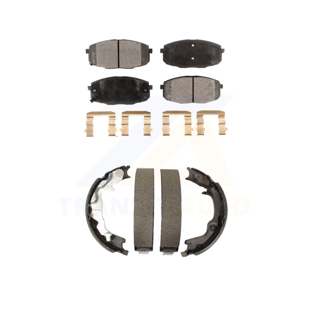 - INCLUDES: 1x Front Semi-Metallic Positive Plus Brake Pad Set (Hardware Included) + 1x Rear Top Quality Parking Brake Shoe