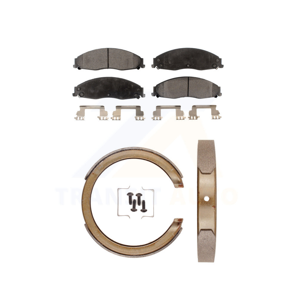 - INCLUDES: 1x Front Semi-Metallic Positive Plus Brake Pad Set (Hardware Included) + 1x Rear Top Quality Parking Brake Shoe