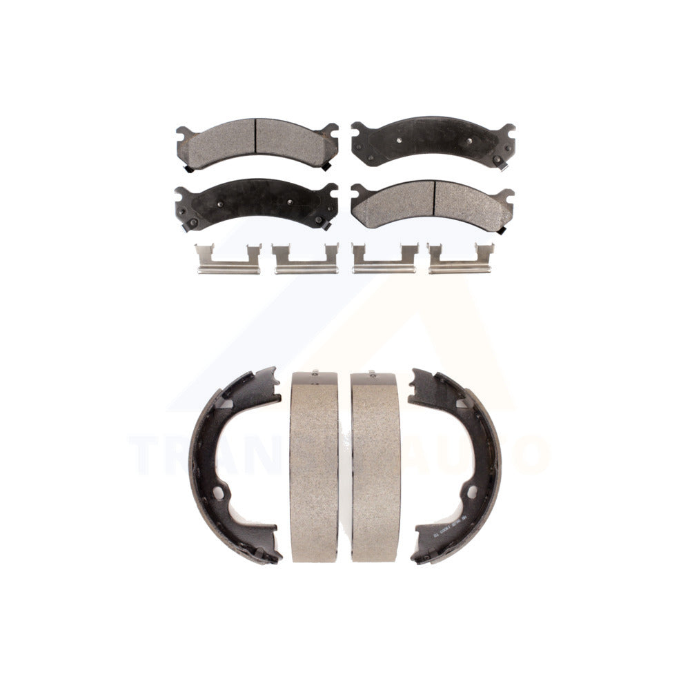 - INCLUDES: 1x Front Semi-Metallic Positive Plus Brake Pad Set (Hardware Included) + 1x Rear Top Quality Parking Brake Shoe