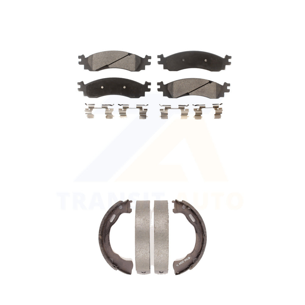 - INCLUDES: 1x Front Semi-Metallic Positive Plus Brake Pad Set (Hardware Included) + 1x Rear Top Quality Parking Brake Shoe