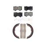 - INCLUDES: 1x Front Semi-Metallic Positive Plus Brake Pad Set (Hardware Included) + 1x Rear Top Quality Parking Brake Shoe