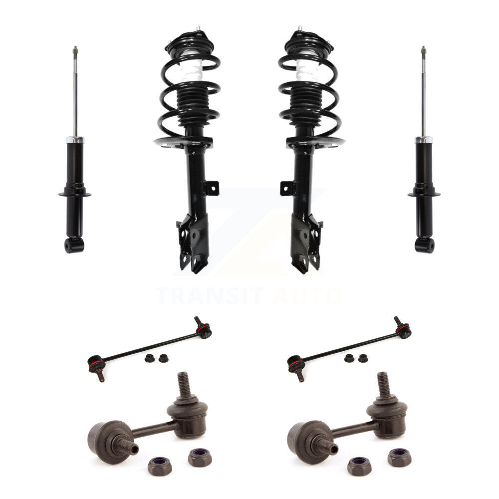- Kit Includes: 2x Front Unity Automotive Suspension Strut and Coil Spring Assembly (Both Side) + 2x Front TOR Suspension Stabilizer Bar Link Kit (Both Side) + 2x Rear TMC Suspension Strut (Both Side) + 2x Rear TOR Suspension Stabilizer Bar Link Kit (B