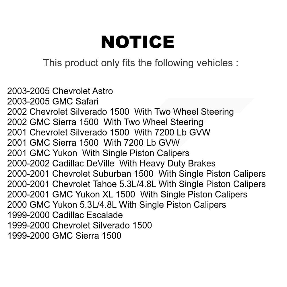 | 2000 | Chevrolet | Suburban 1500 | All | With Single Piston Calipers | All | All | All | All |