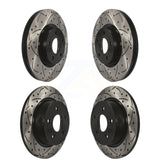 - COMPREND : 2 disques de frein à disque à fente percés à revêtement avant (des deux côtés) + 2 disques de frein à disque à fente percés à revêtement arrière (des deux côtés)