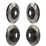 - COMPREND : 2 disques de frein à disque à fente percés à revêtement avant (des deux côtés) + 2 disques de frein à disque à fente percés à revêtement arrière (des deux côtés)