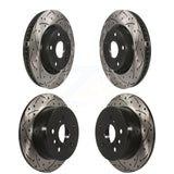 - COMPREND : 2 disques de frein à disque à fente percés à revêtement avant (des deux côtés) + 2 disques de frein à disque à fente percés à revêtement arrière (des deux côtés)