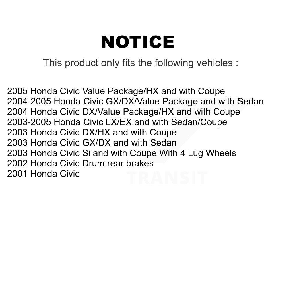 | 2003 | Honda | Civic | Si | With 4 Lug Wheels | Coupe | All | All | All |