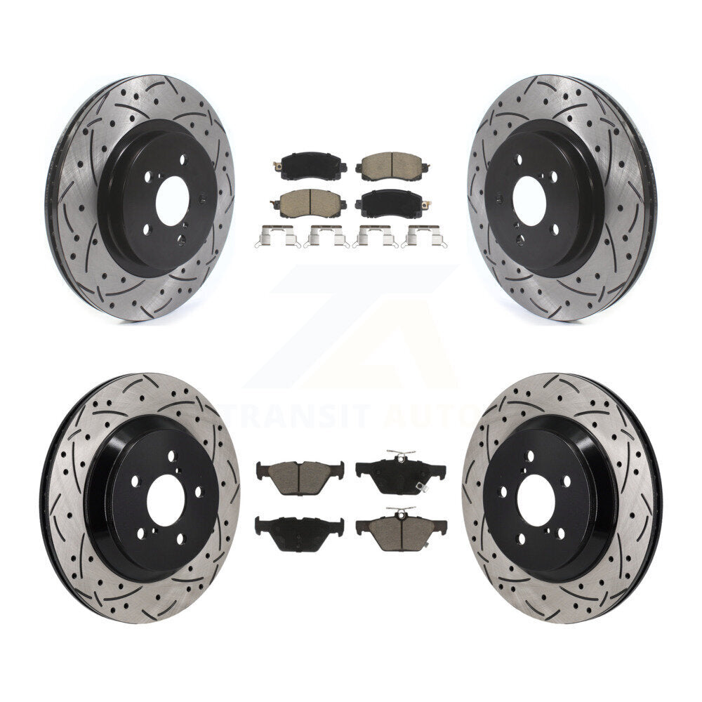 - Kit Includes: 2x Front Coated Drilled Slotted DS-One Disc Brake Rotor (Both Side) + 1x Front Ceramic CMX Brake Pad Set (Hardware Included) + 2x Rear DS-One Disc Brake Rotor (Both Side) + 1x Rear Ceramic CMX Brake Pad Set