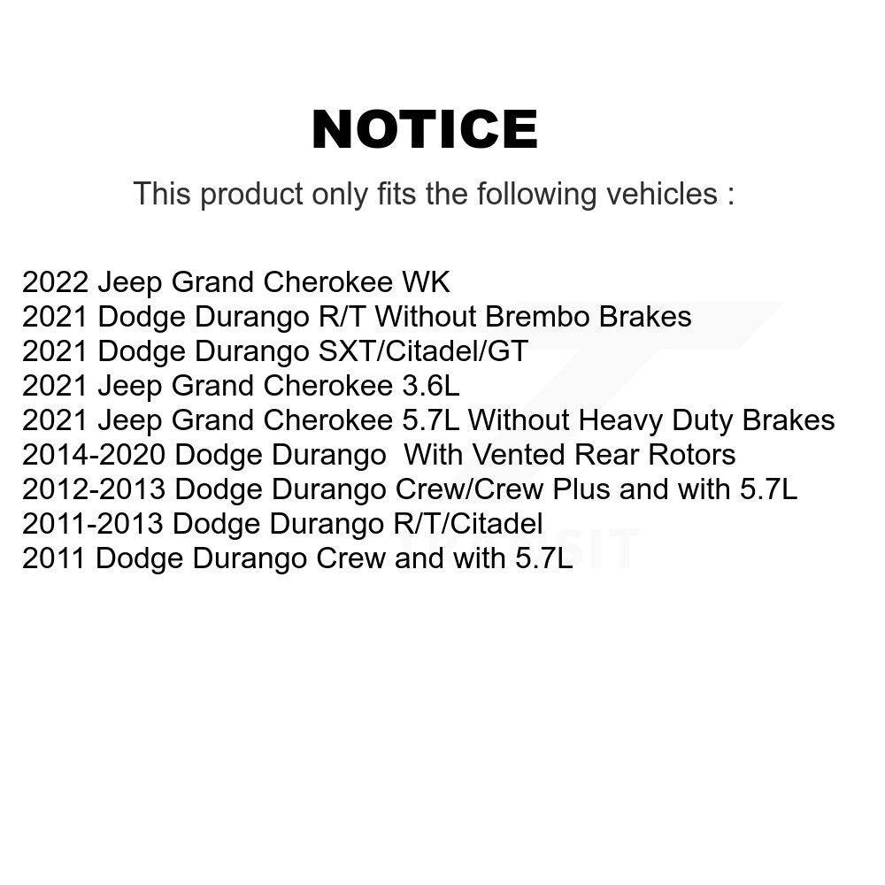 | 2021 | Dodge | Durango | R/T | Without Brembo Brakes | All | All | All | All |