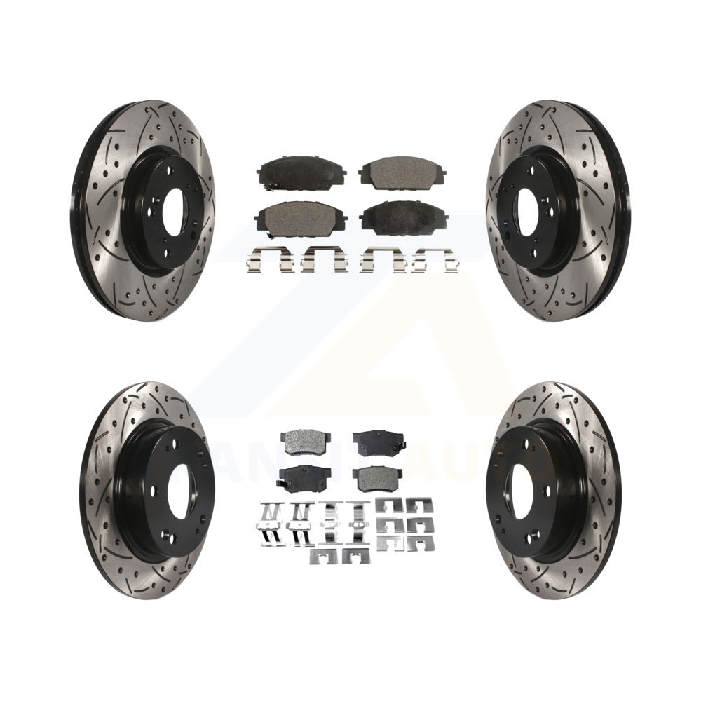 - INCLUDES: 2x Front Coated Drilled Slotted DS-One Disc Brake Rotor (Both Side) + 1x Front Ceramic TEC Brake Pad Set (Hardware Included) + 2x Rear Coated Drilled Slotted DS-One Disc Brake Rotor (Both Side) + 1x Rear Ceramic TEC Brake Pad Set (Hardware